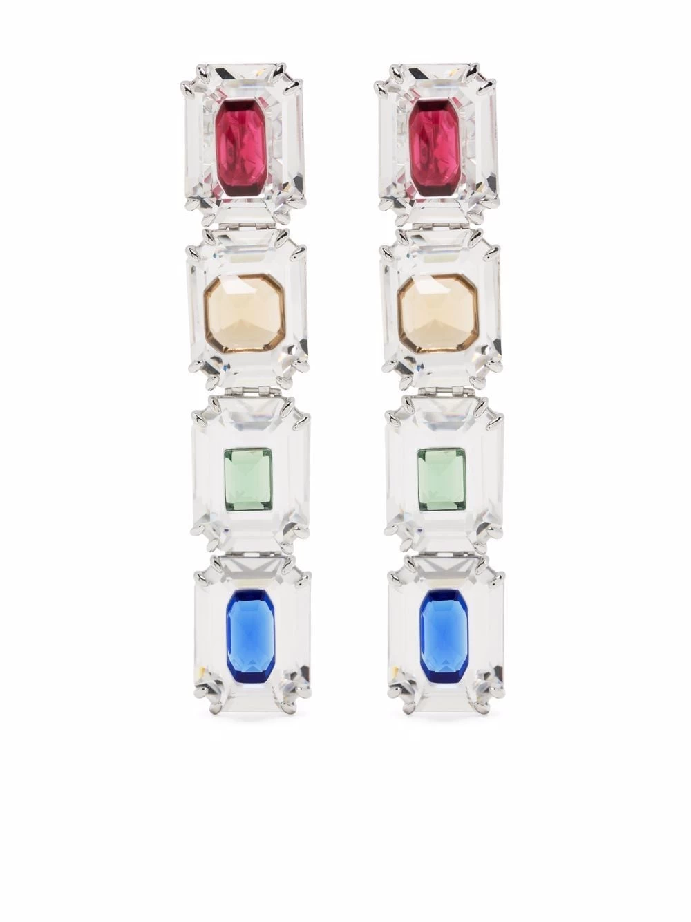 Swarovski’s clip-on earrings are a striking option that highlights the brand’s expertise. This rhodium-plated pair is made of clear octagon-cut Swarovski crystals that are topped with colourful iterations including red and blue, creating a prism effect.Â