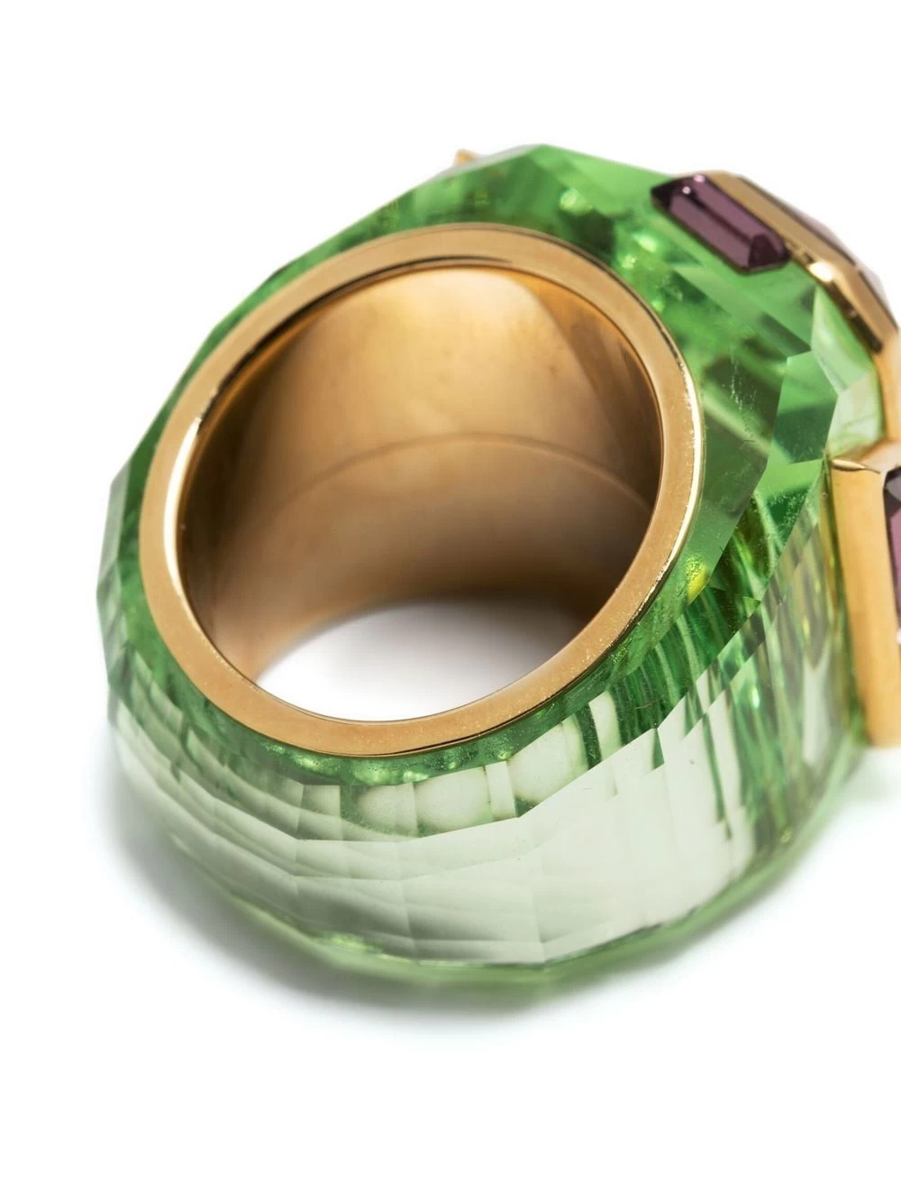Chroma stone cocktail ring from Swarovski featuring emerald green, gold plated, gemstone detailing and two-tone design.