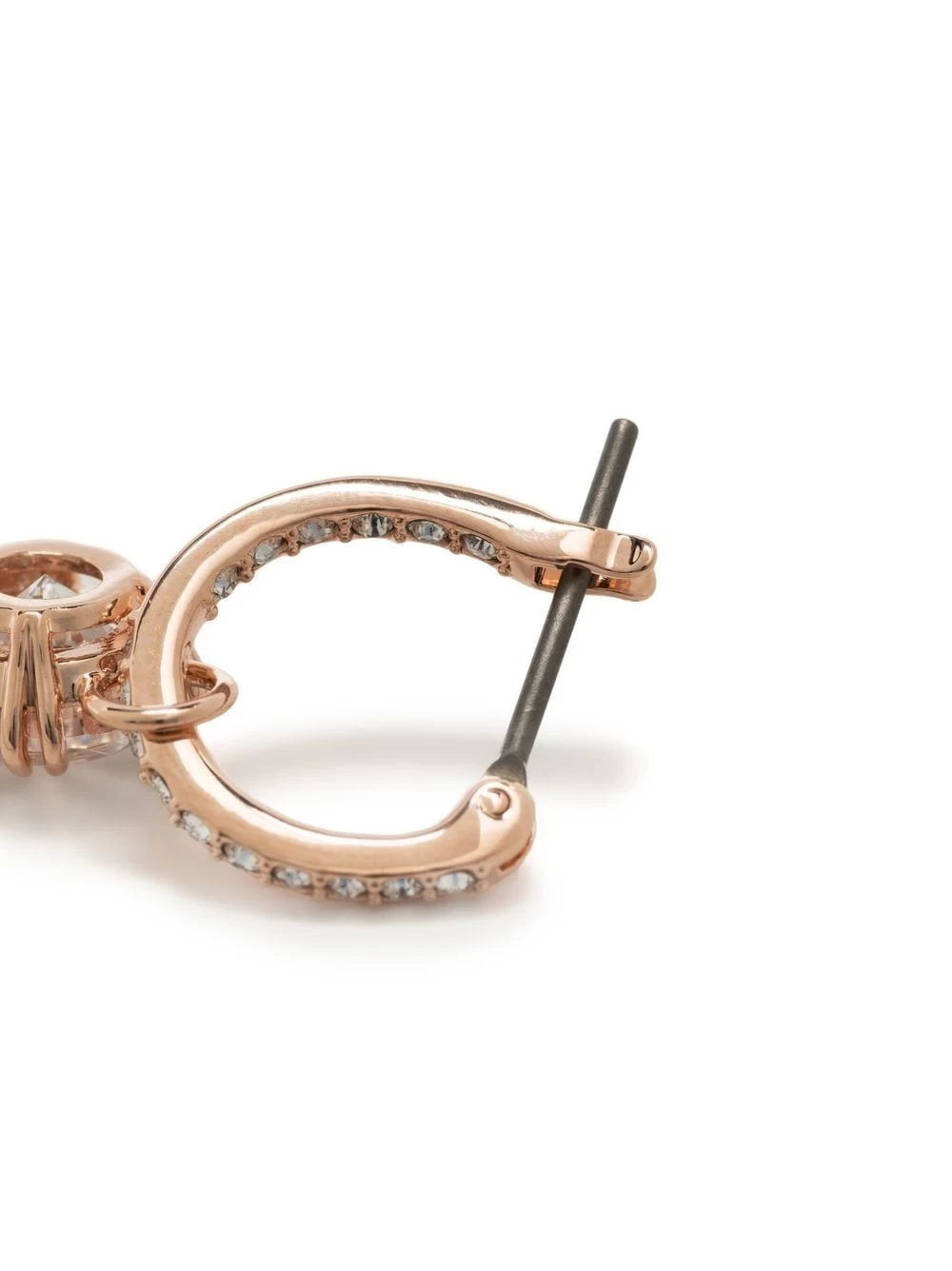 Constella drop earrings from Swarovski featuring rose gold-tone hardware, Swarovski crystal embellishment, round cut, small hoop design, white/rose gold and metal/crystal. Sold in pairs..
