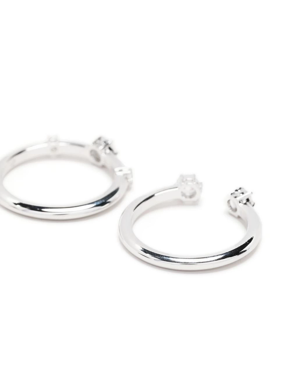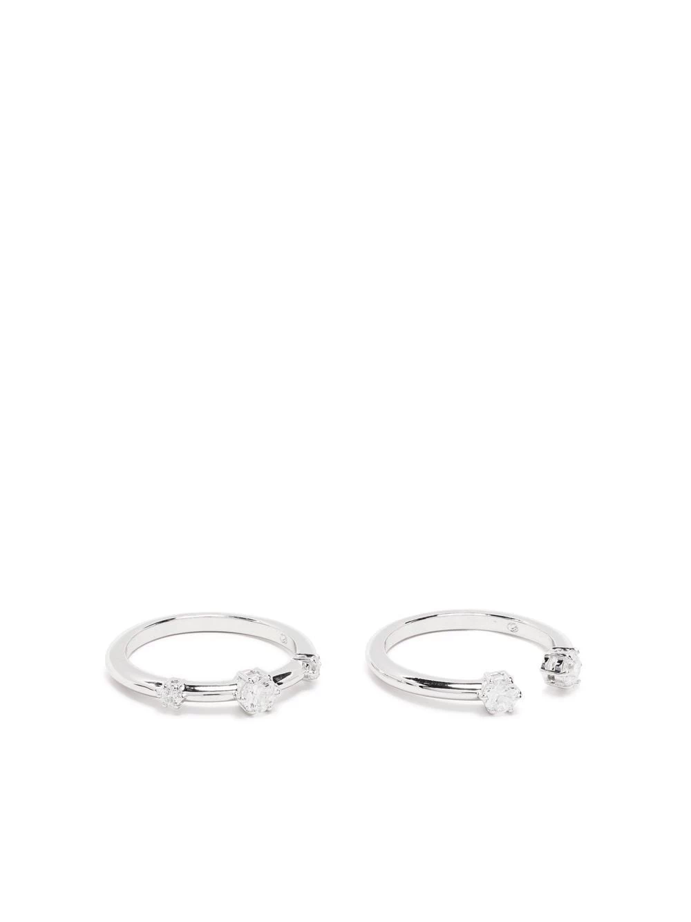 Constella round-cut crystal rings from Swarovski featuring white diamond, rhodium plating, Swarovski crystal embellishment and set of two.
