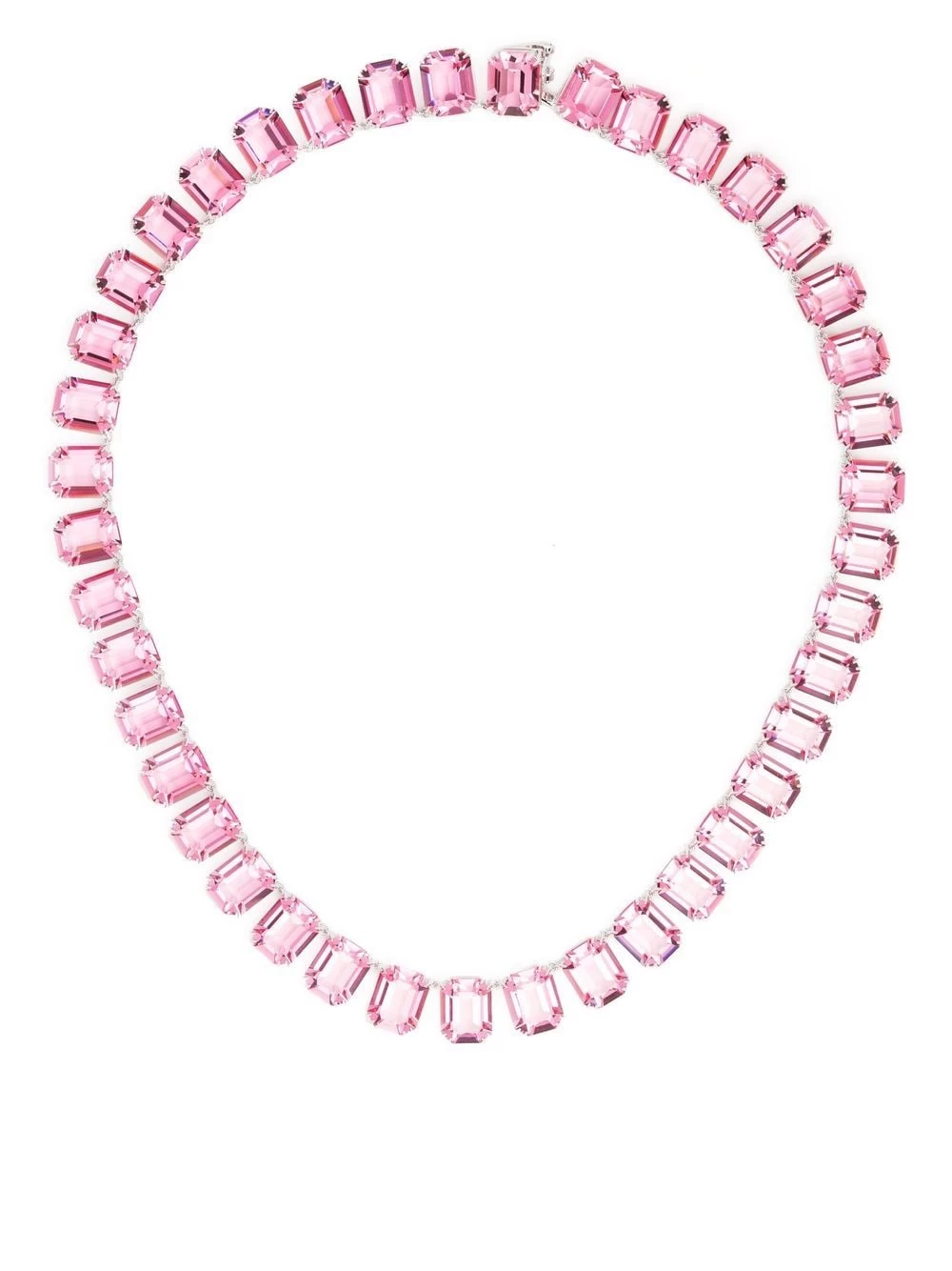 crystal-embellished choker necklace from Swarovski featuring rose pink, crystal embellishment, rear clip fastening and silver-tone hardware.