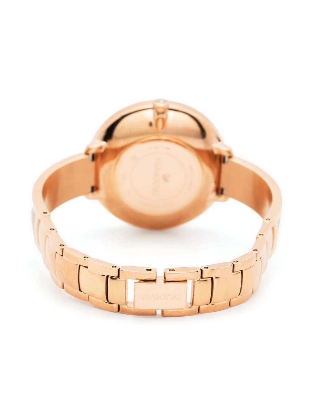 Crystalline Delight 32mm watch from Swarovski featuring grey, rose gold, stainless steel, Swarovski crystal embellishment, President bracelet, round face, folding clasp and quartz movement.