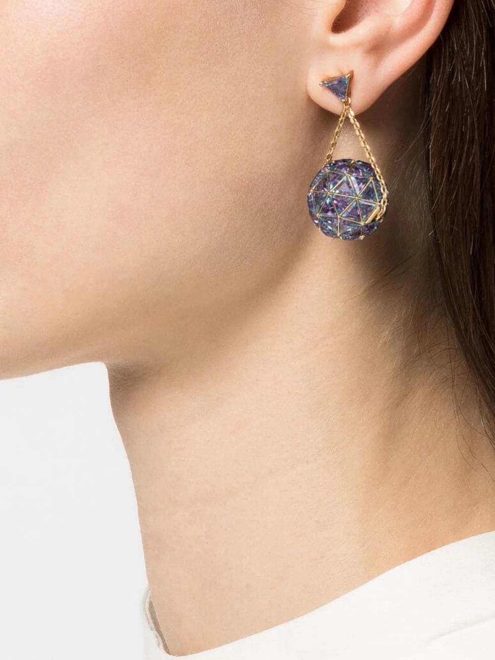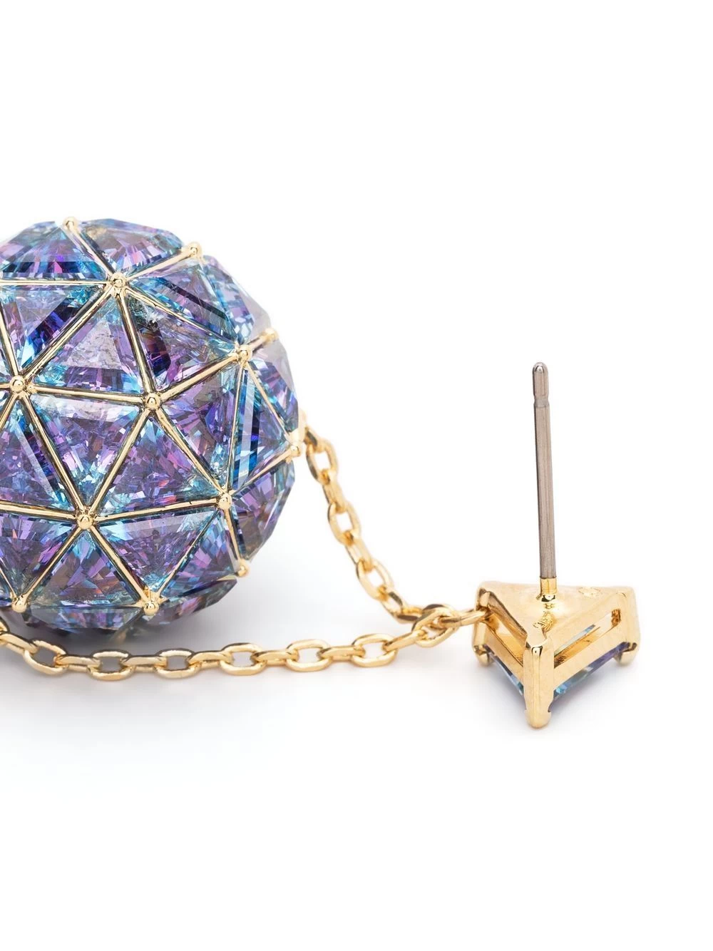 Curiosa drop earrings from Swarovski featuring aqua blue, purple, gold-tone, plated finish, drop design, circular pendant, triangle shape, cubic zirconia and for pierced ears. These earrings come as a pair..