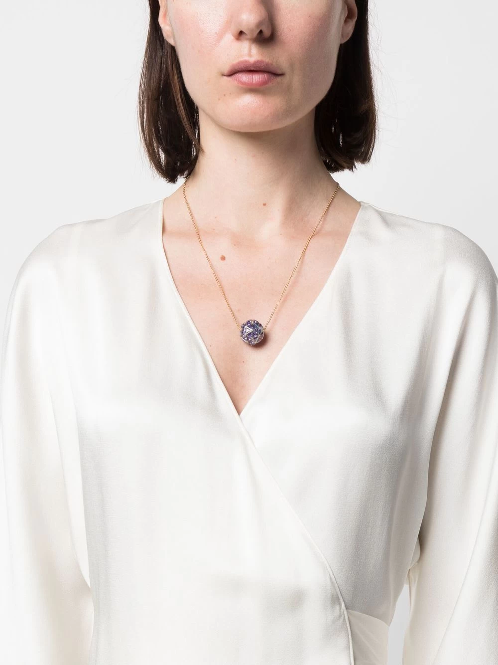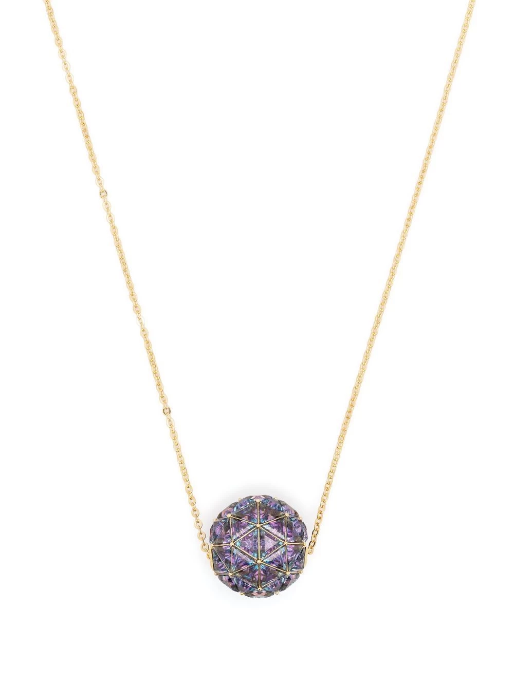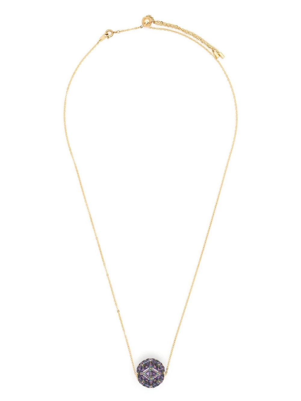 Curiosa pendant necklace from Swarovski featuring gold-tone, rolo chain, crystal embellishment, circular pendant and lobster claw fastening.