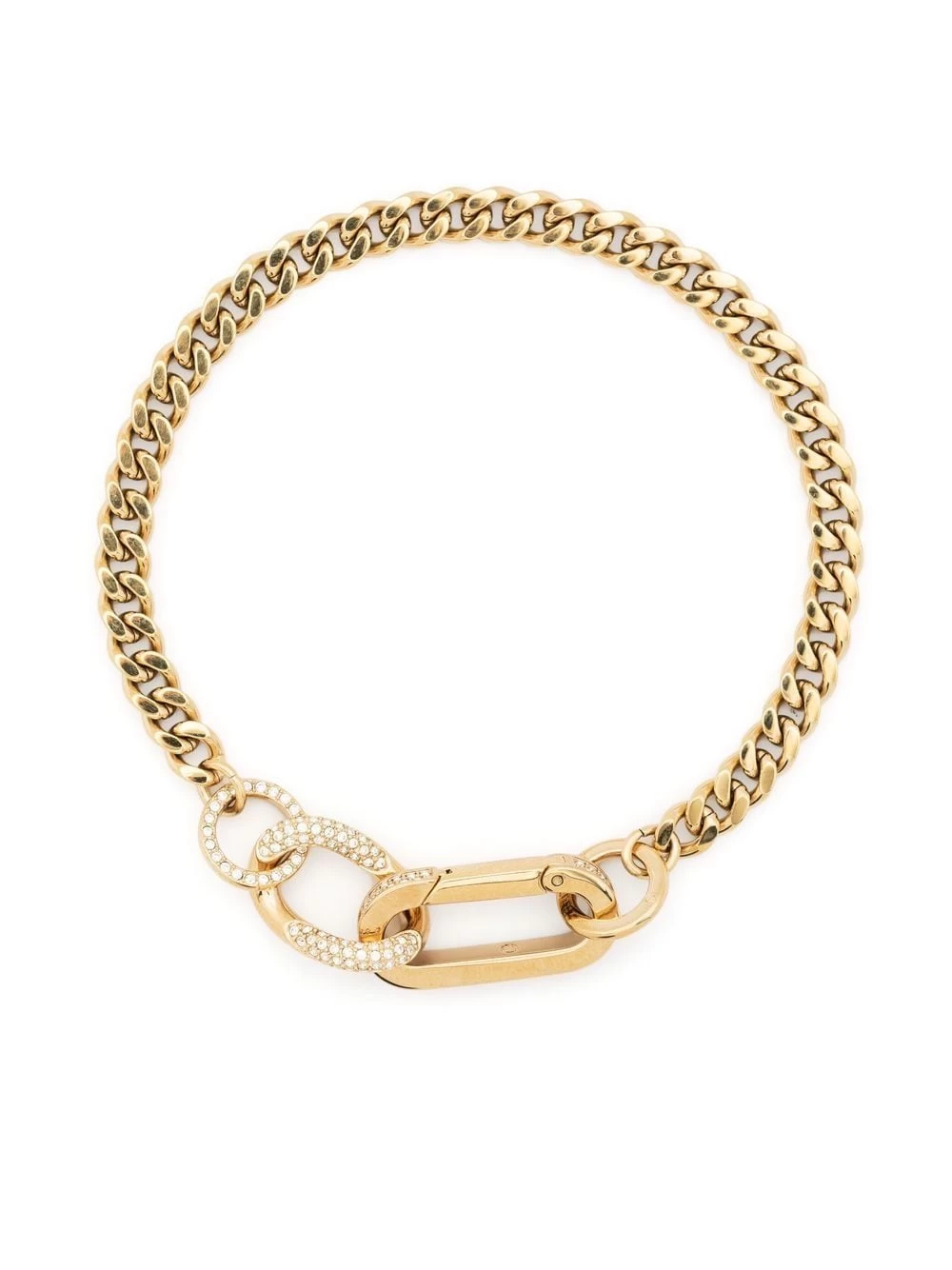 Dextera chain-link bracelet from Swarovski featuring gold-tone, gold plated, chain-link detailing, Swarovski crystal embellishment, pavé setting and carabiner fastening.