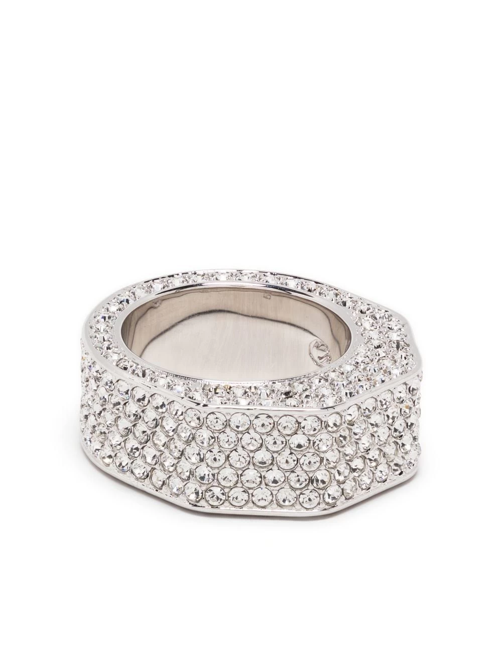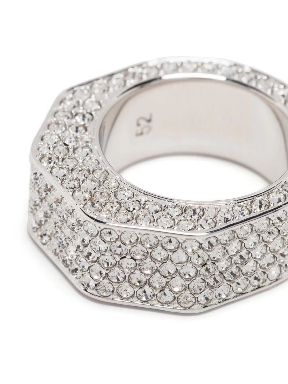 Dextera octagonal ring from Swarovski featuring silver-tone, brass, rhodium plating, Swarovski crystal embellishment, pavé setting and geometric body.