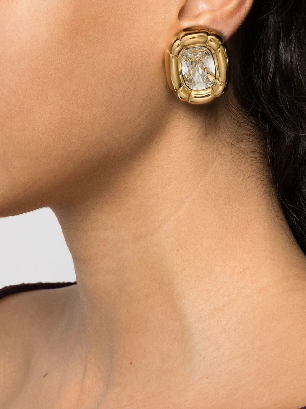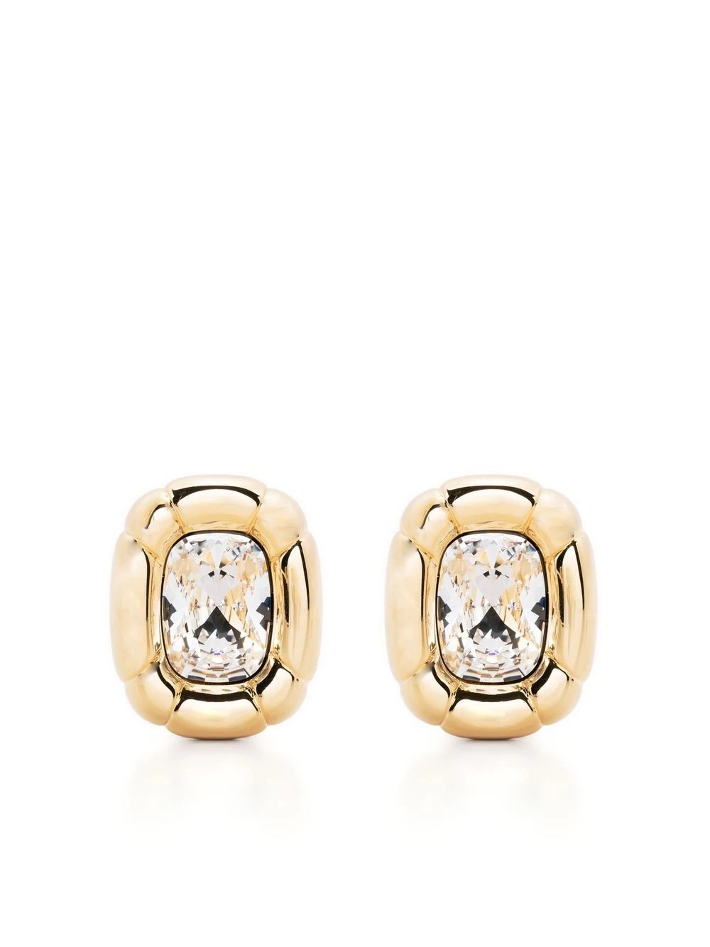 Dulcis clip-on earrings from Swarovski featuring gold-tone, clip-on design and cushion cut Swarovski crystals. These earrings come as a pair..