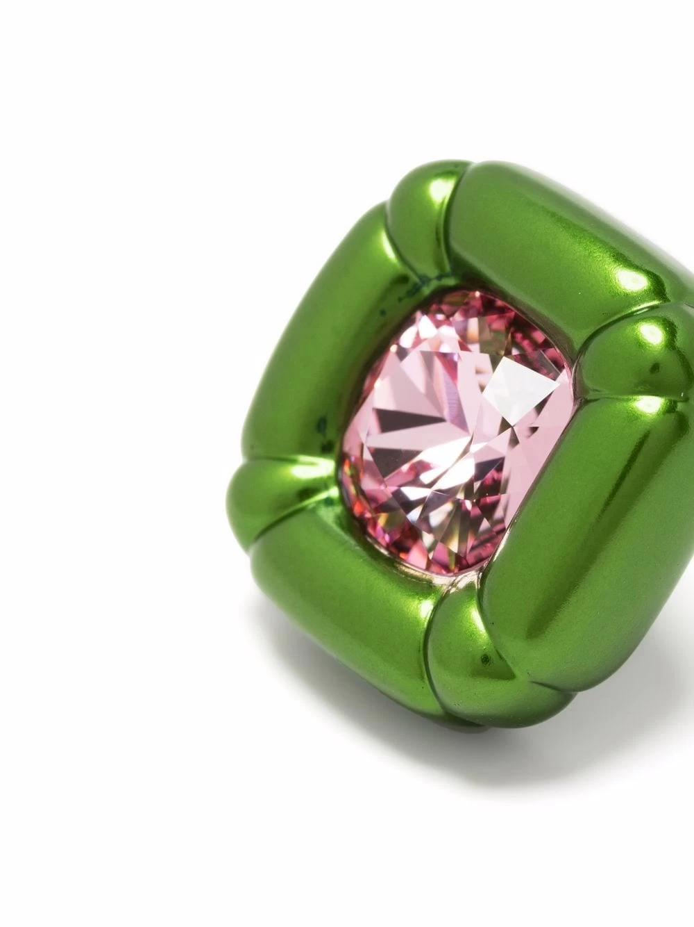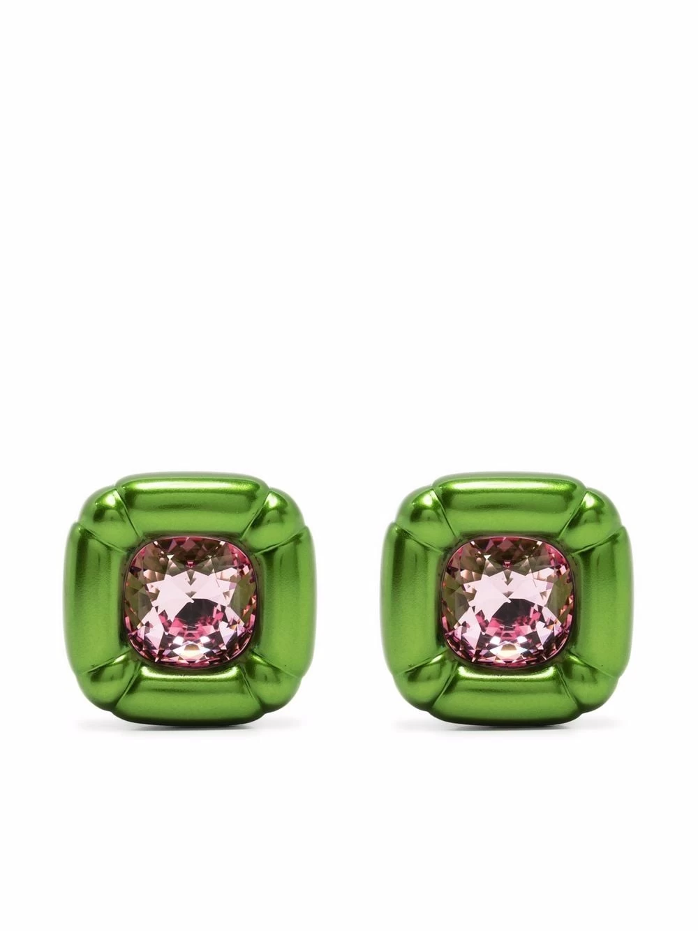 Designed by Creative Director Giovanna Engelbert for Collection I which forms part of the Dulcis line, these earrings feature Pop Art-inspired shapes detailed with single precision cut crystals that are cushioned in green glossy molded settings for an unexpected and playful finish.