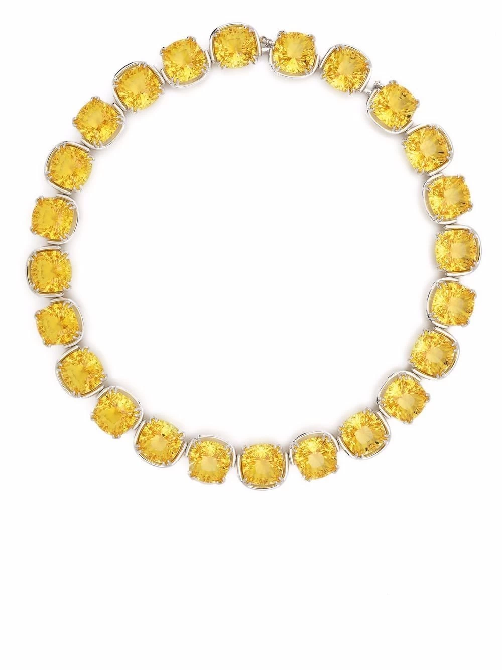 Designed by Creative Director Giovanna Engelbert for Collection I which forms part of the Harmonia line, this choker gives the illusion of floating stones with its classic cushion cut crystals in a modern setting.