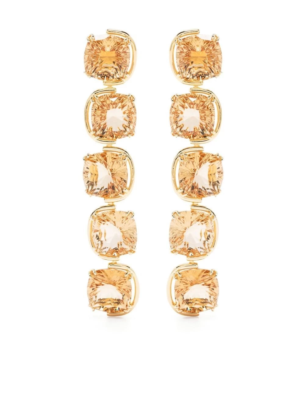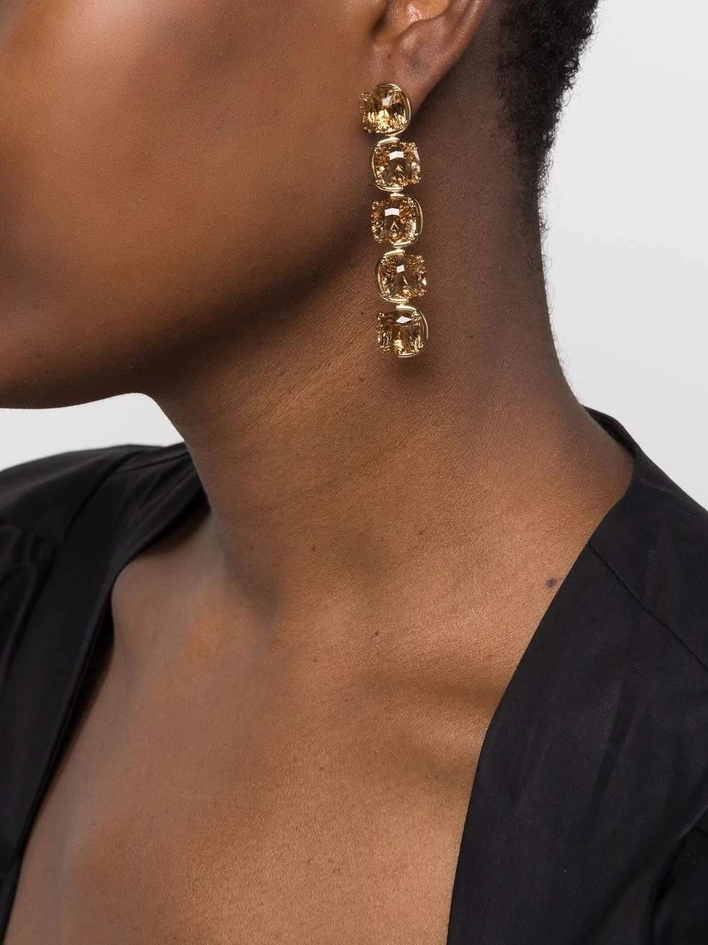 Harmonia cushion-cut drop earrings from Swarovski featuring amber yellow, crystal, gold-tone, cushion cut, drop design and for pierced ears. These earrings come as a pair..