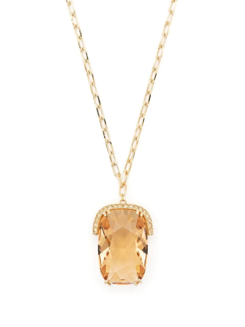 Harmonia pendant necklace from Swarovski featuring lobster claw fastening, chain-link detailing, lobster claw fastening, adjustable fit, gold plated/crystal and cushion cut Swarovski crystal.