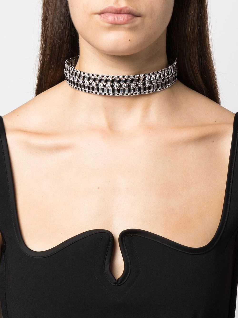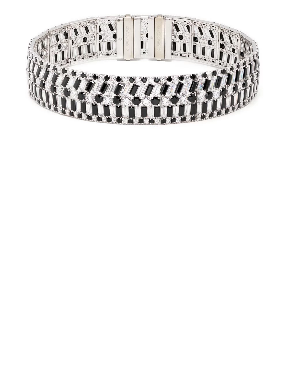 Hyperbola mix cut choker necklace from Swarovski featuring black, rhodium plating, gemstone detailing and concealed rear fastening.