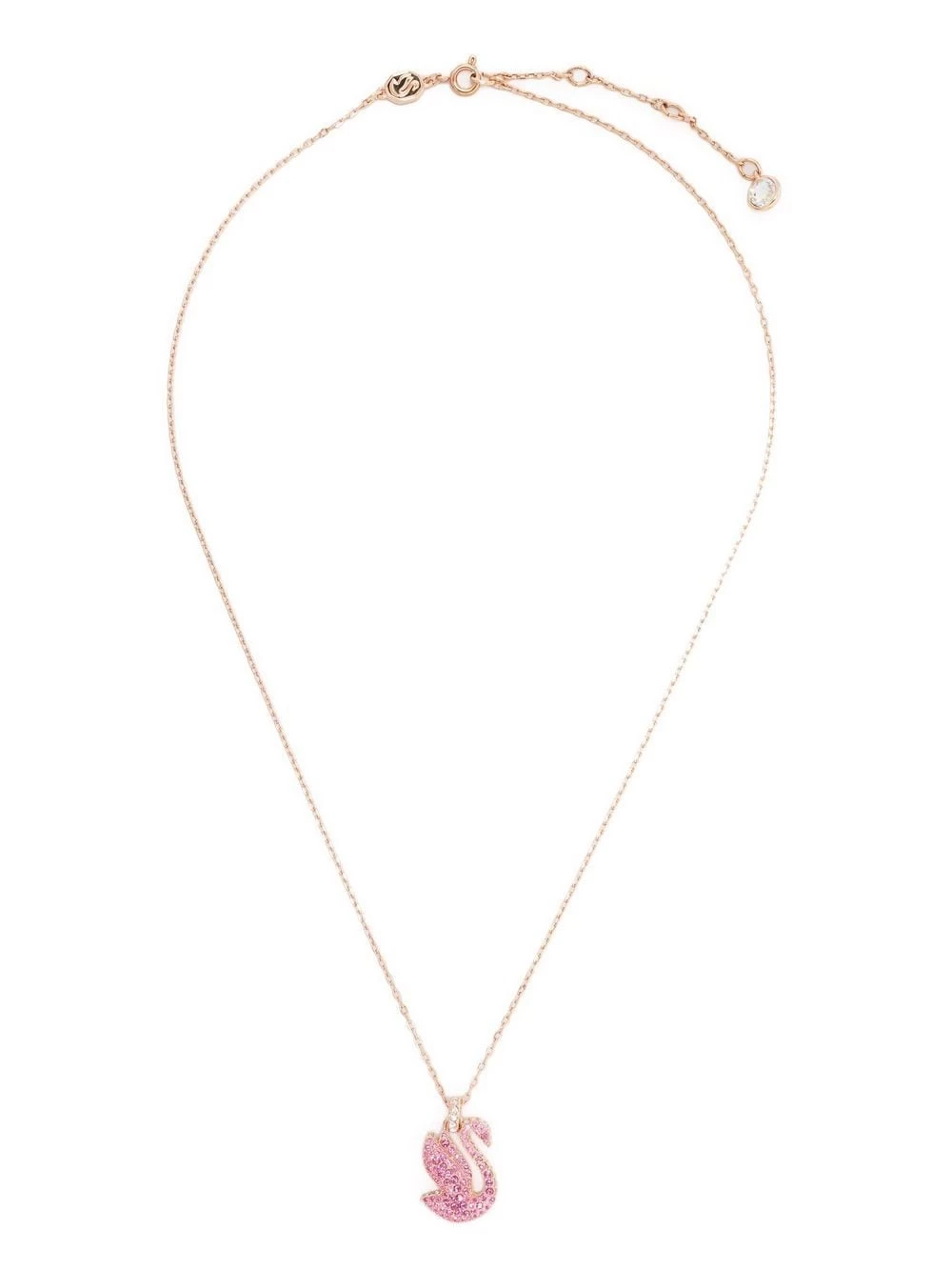 Iconic Swan pendant necklace from Swarovski featuring rose gold-tone hardware, rose gold-tone hardware, Swarovski crystal embellishment, statement pendant, logo plaque, rolo chain and lobster claw fastening.