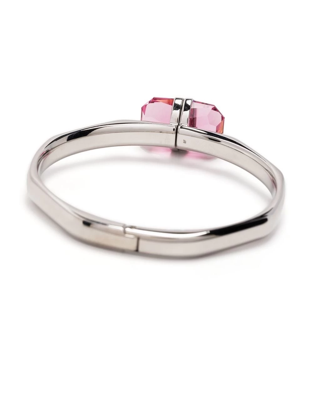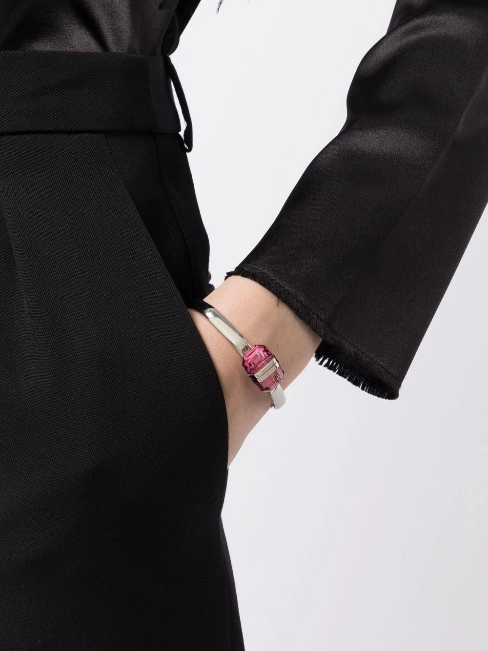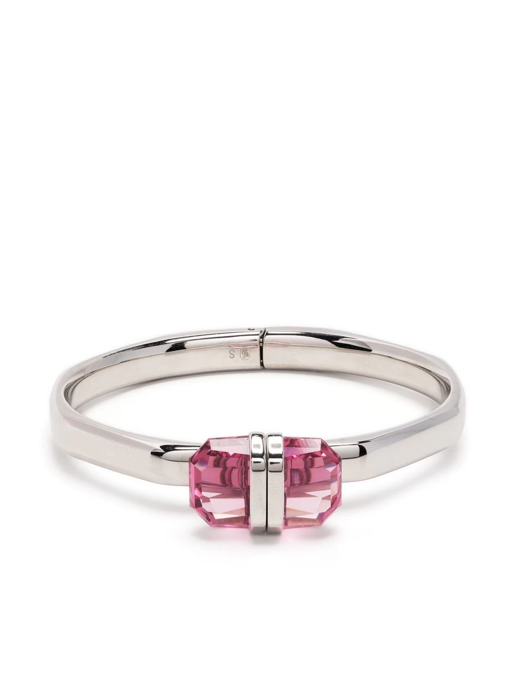 Swarovski offers a modern take on the humble bangle. Crafted from polished stainless steel, this thick-set piece is centred with an octagonal pink crystal that glints from all angles.