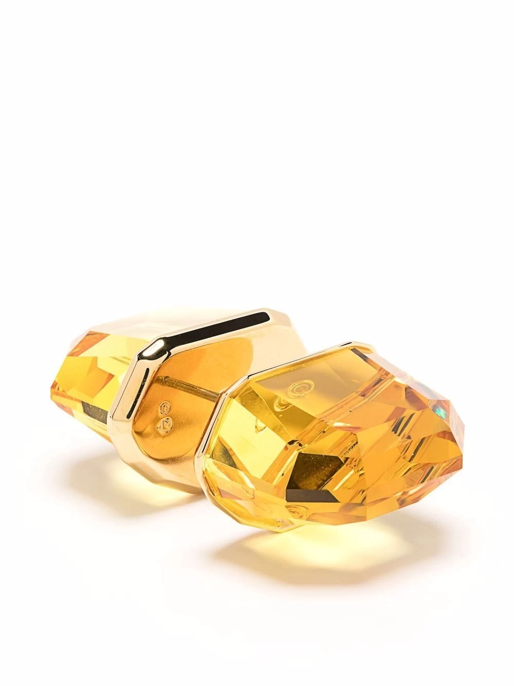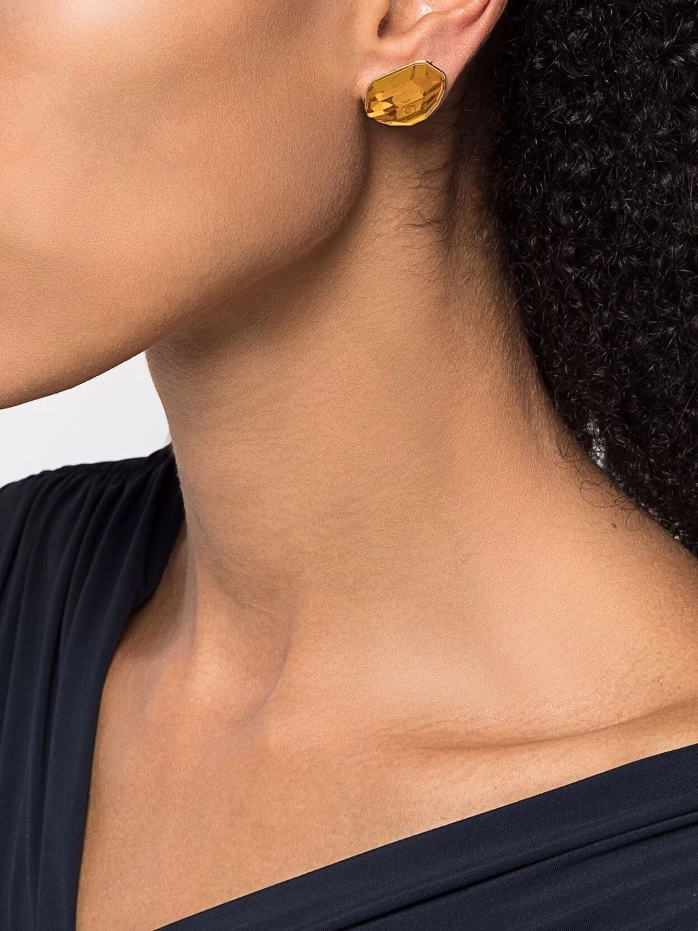 Part of the Lucent family, designed by Creative Director Giovanna Engelbert for Collection I, this single Swarovski stud earring combines vibrant colour and playful innovation. Set in a gold-tone plated setting, the yellow octagon cut crystal is sliced into two parts, creating a bold look.