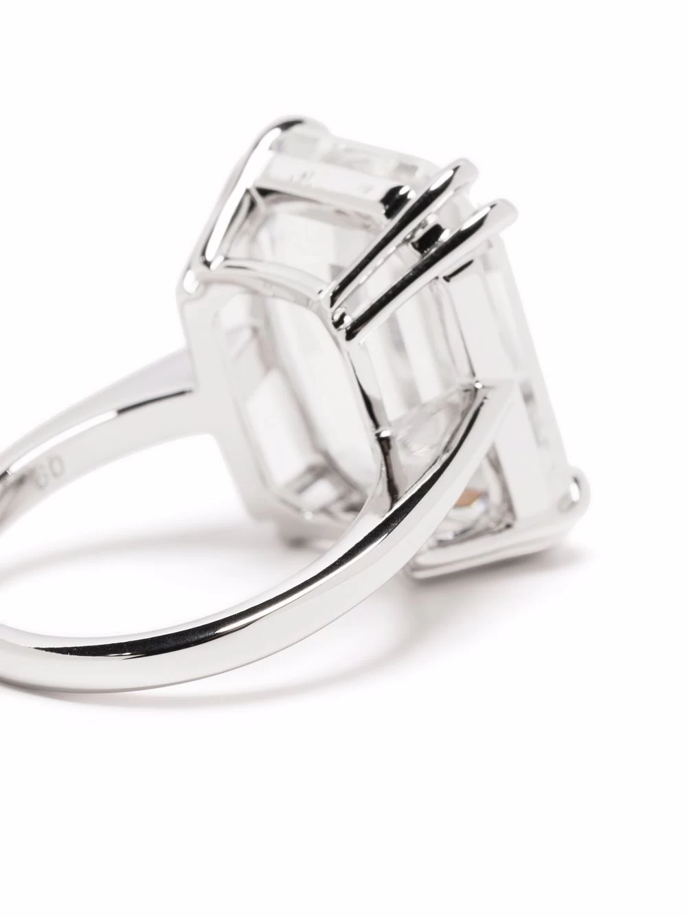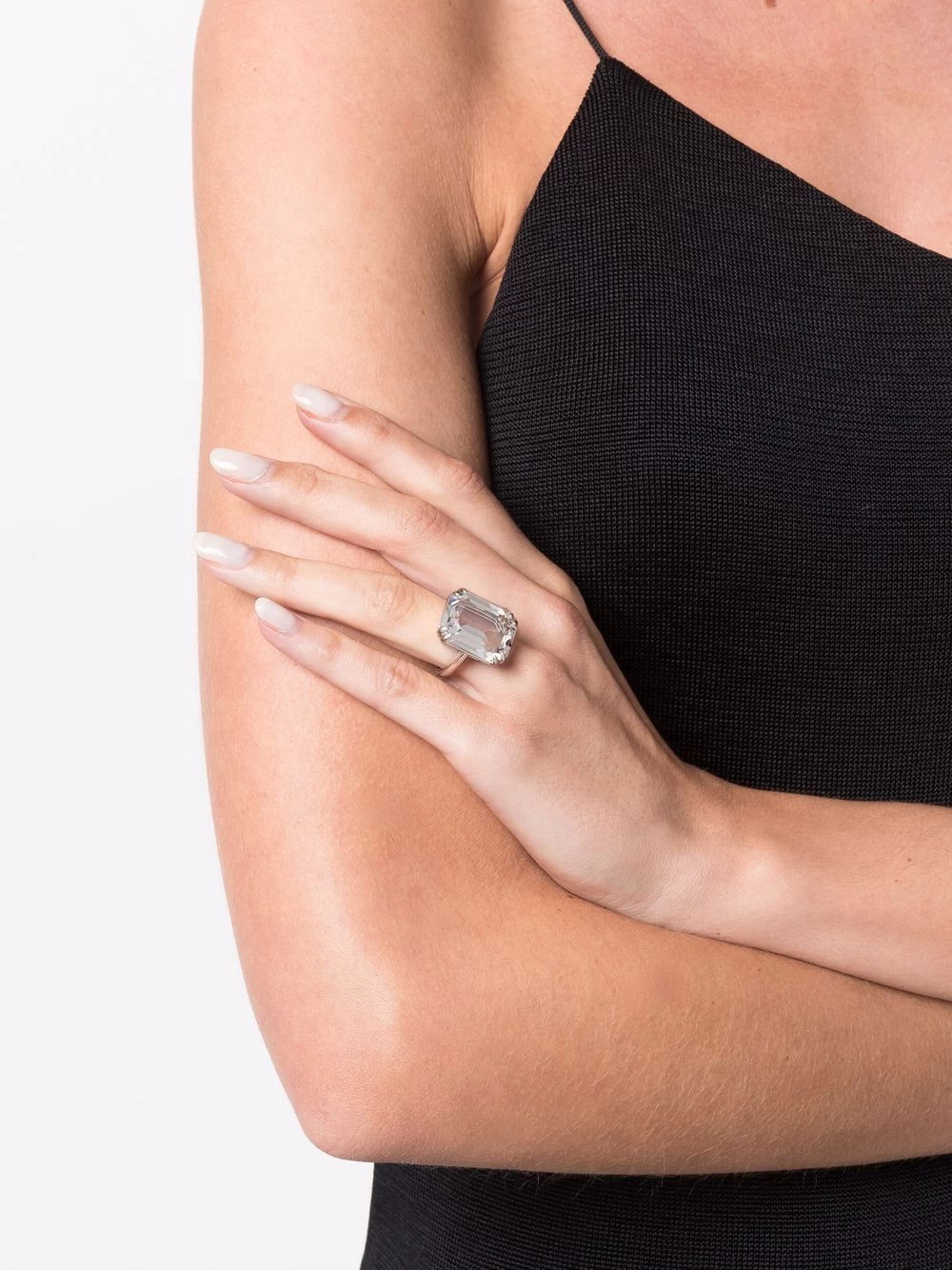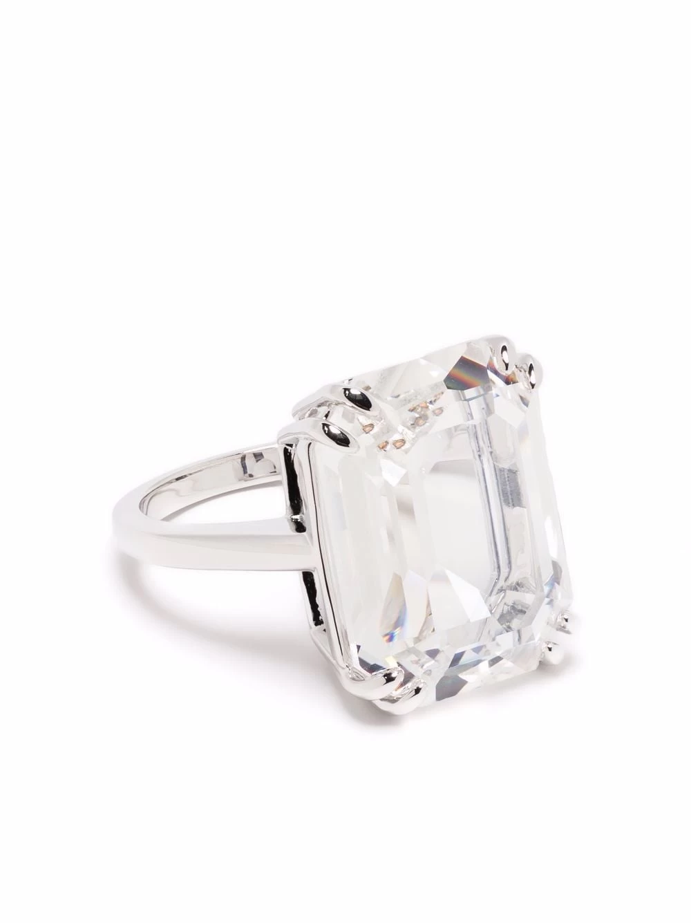 White metal Mesmera cocktail ring from Swarovski featuring rhodium plating, Swarovski crystal embellishment, polished finish, engraved detail and slip-on style.