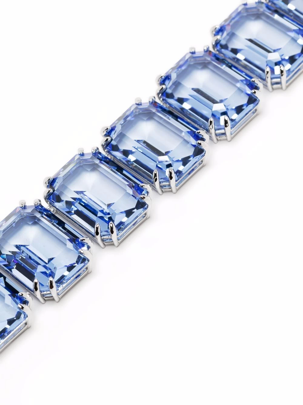 Designed by Creative Director Giovanna Engelbert for Collection I which forms part of the Millenia line, this necklace pops with its row of vibrant blue octagon cut crystals held in rhodium plated prong settings, whilst the subtle hidden closure creates a seamless finish.