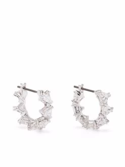 Silver Swarvoski crystal/brass Millenia mini hoop earrings from Swarovski featuring Swarovski crystal embellishment and small hoop design. Sold in pairs..