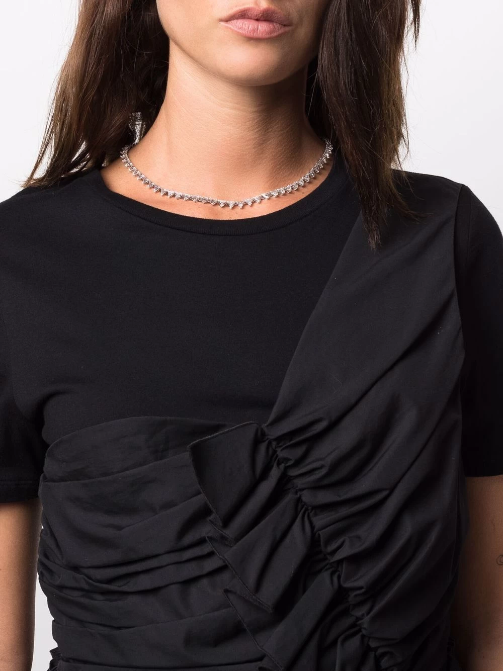 Swarovski’s Millenia necklace evokes a timeless elegance that will never go out of style. This rhodium-plated iteration is inlaid with a row of triangle-cut Swarovski crystals that shimmer from all angles.