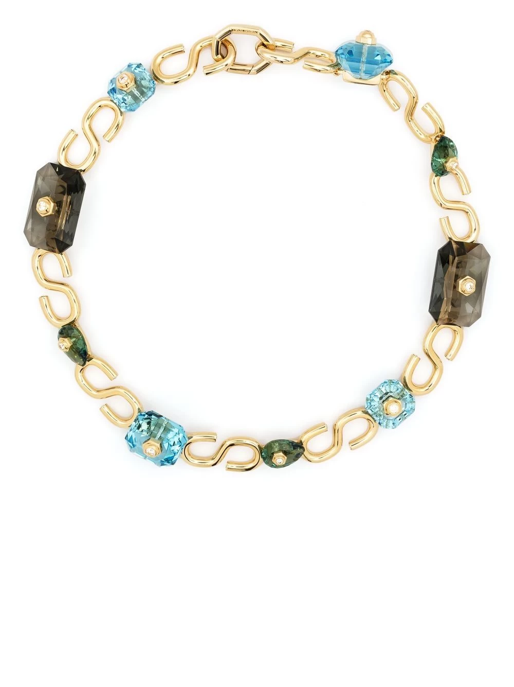 Numina embellsihed neckalce from Swarovski featuring gold-tone, multicolour, crystal embellishment, polished effect and lobster claw fastening.