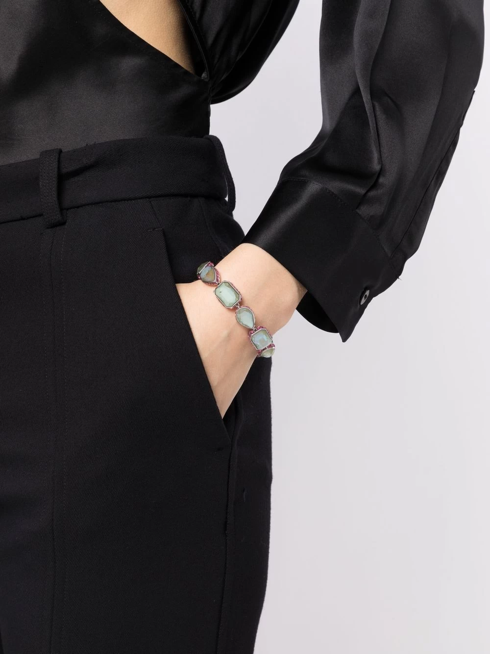 Elegant yet a statement-making piece, this Swarovski bracelet is adorned with crystals and crafted with square-shaped links for a sleek modern look.