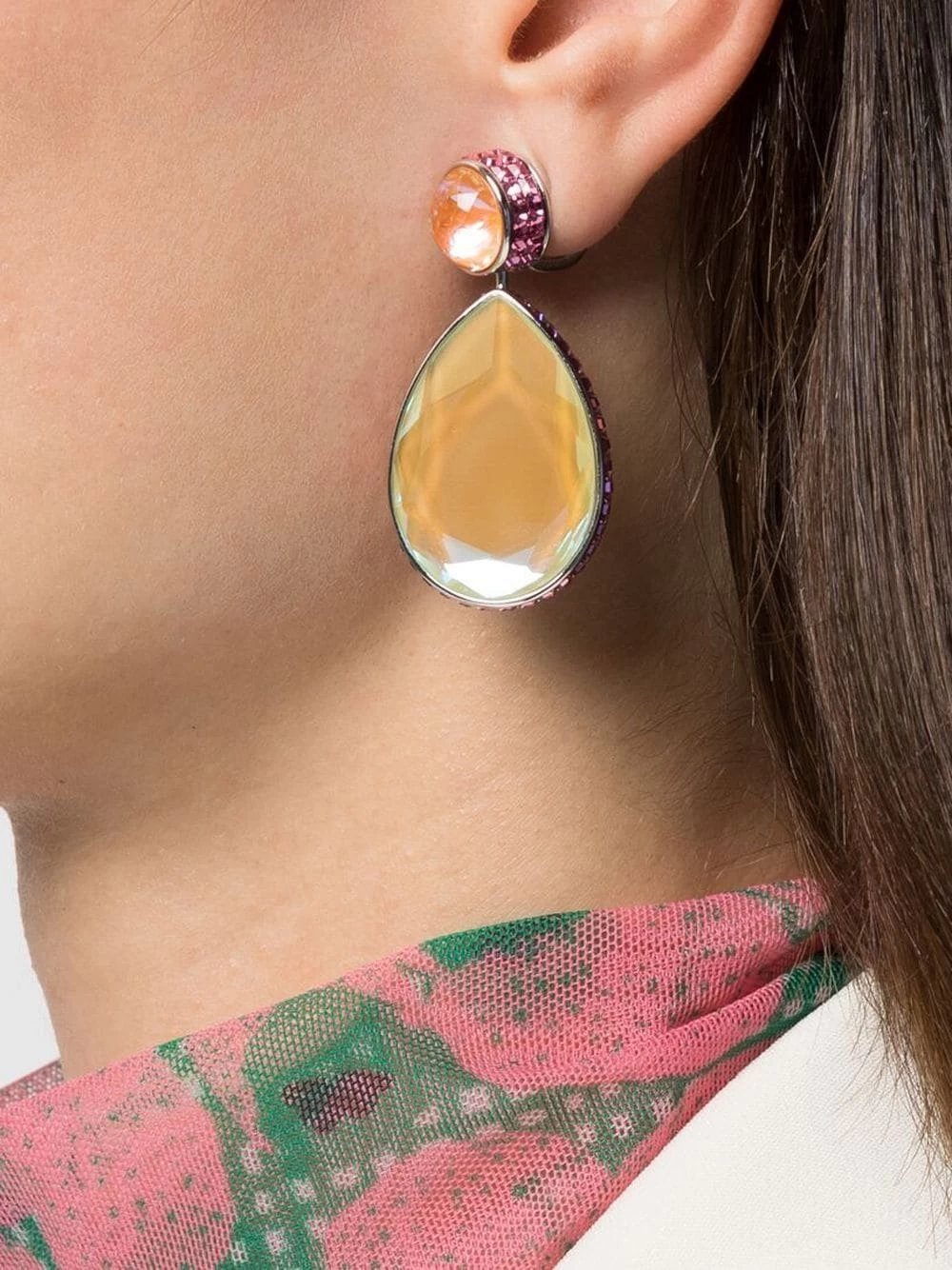 Orbita crystal-embellished drop earrings from Swarovski featuring light pink, Swarovski crystal embellishment, brass, silver-tone hardware, drop design and clip fastening. These earrings come as a pair..