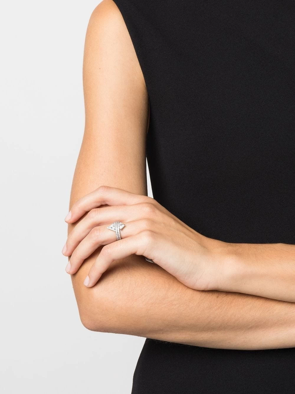 Ortyx crystal ring from Swarovski featuring silver, white, brass, crystal, crystal embellishment, triangle shape and high-shine finish.