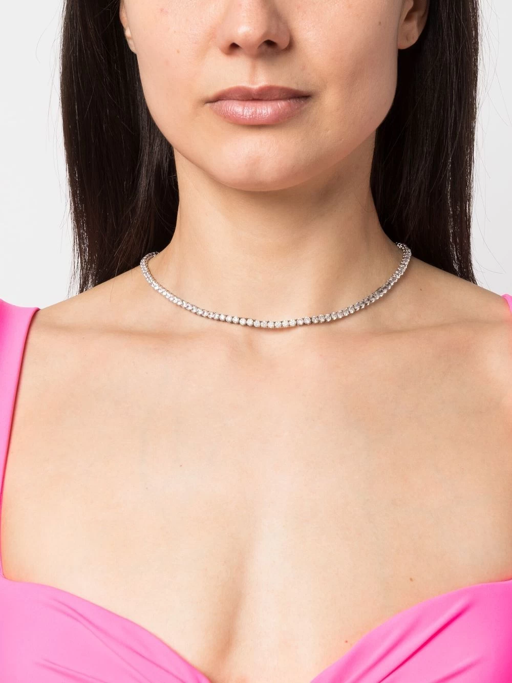 round cut Matrix Tennis necklace from Swarovski featuring silver-tone, brass, cubic zirconia, round cut and pavé setting.