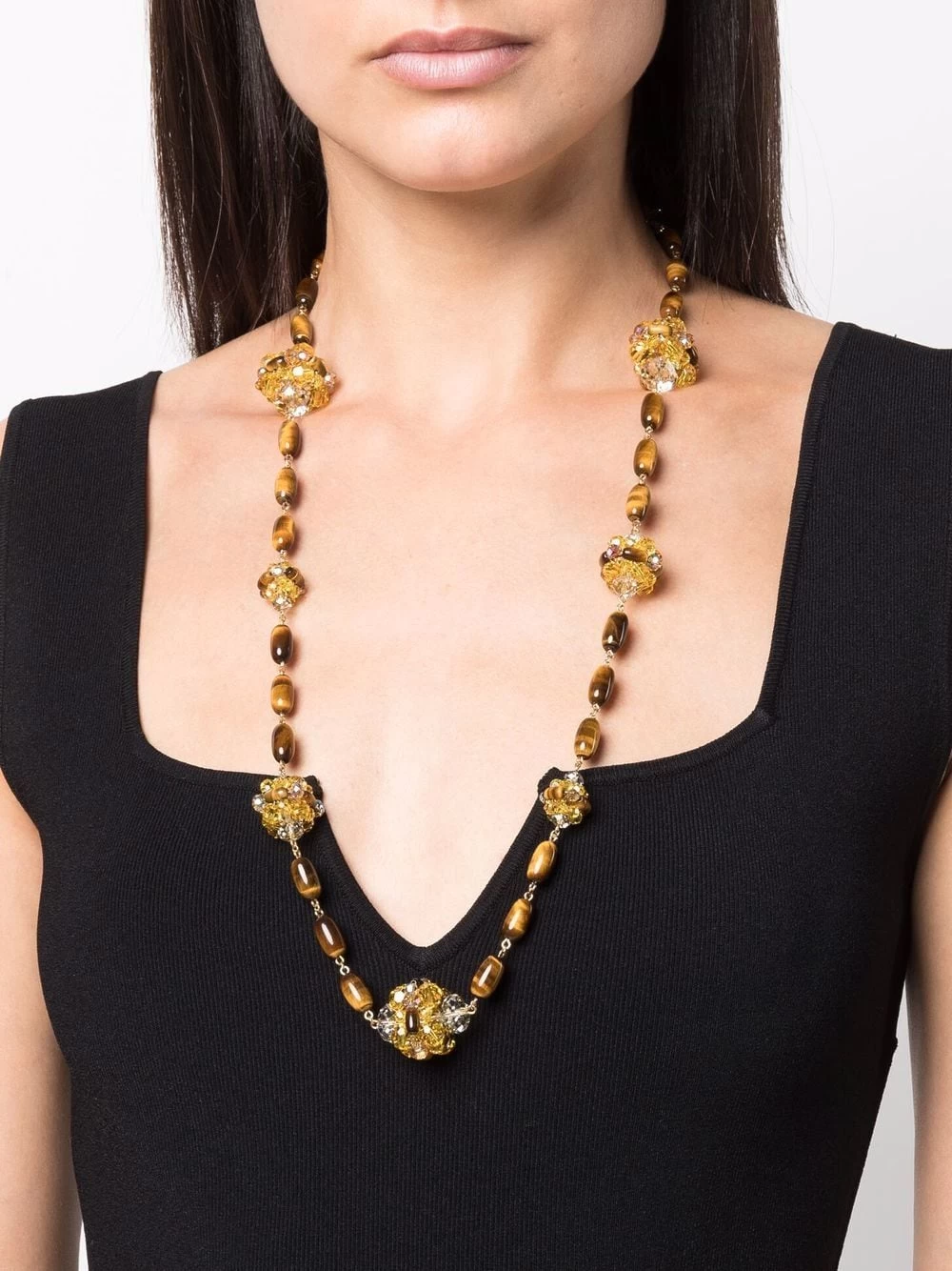 Designed by Creative Director Giovanna Engelbert for Collection I which forms part of the Somnia family, this necklace is inspired by bohemian bead work and features clusters of earthy toned crystals and lustrous tiger eye beads.Â