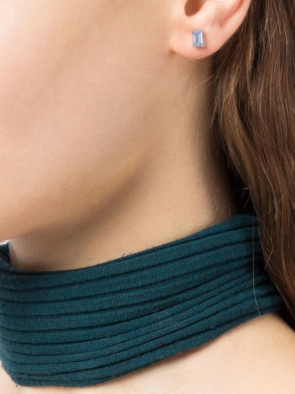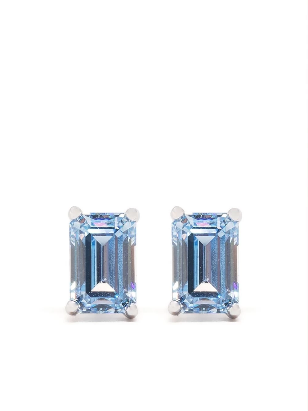 Adorned with blue-hued baguette-cut Swarovski crystals, these stud earrings embody the brand’s penchant for delicate yet glimmering pieces. The studs are finished with rhodium plating for longevity.