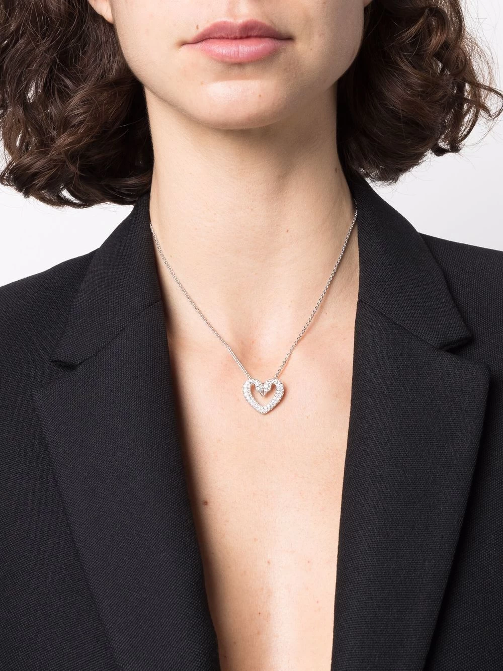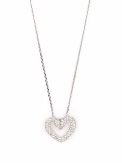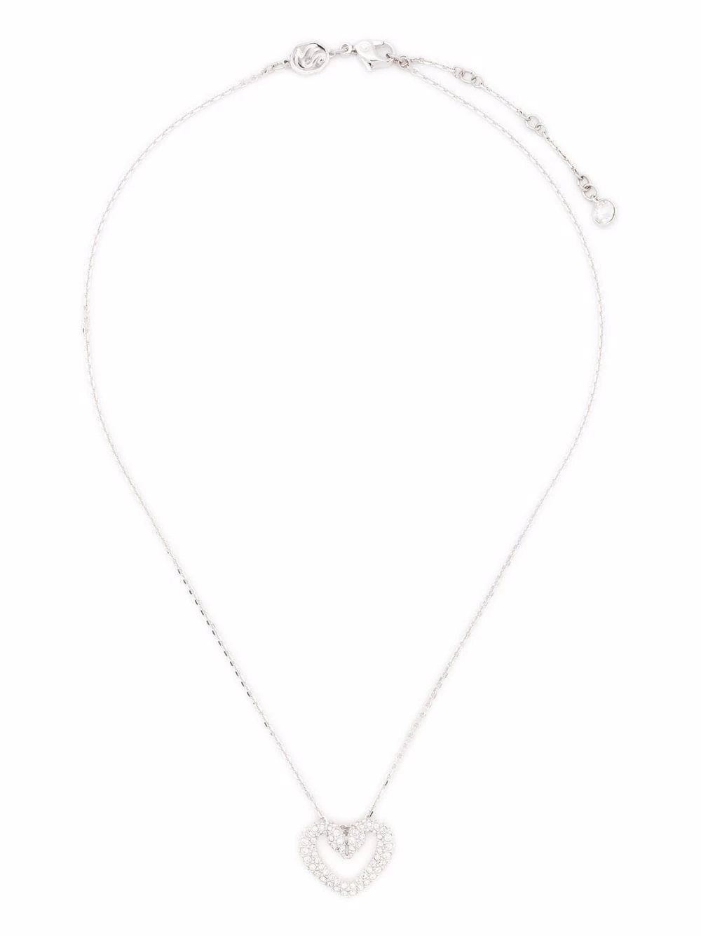 Silver-tone rhodium-plated brass Una heart pendant necklace from Swarovski featuring heart pendant, Swarovski crystal embellishment, adjustable-length chain and lobster claw fastening.