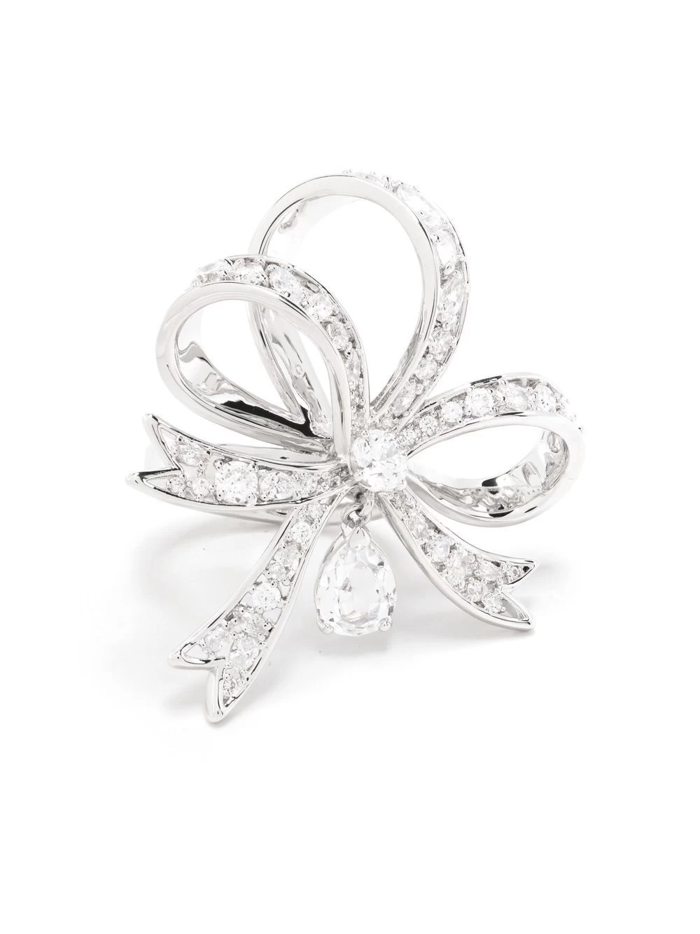 Volta bow large cocktail ring from Swarovski featuring silver-tone, crystal embellishment, bow detailing and slip-on style.