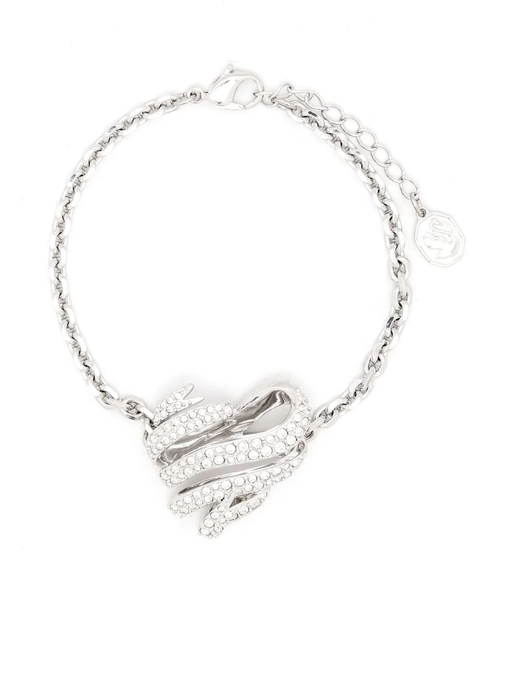 Volta heart-charm bracelet from Swarovski featuring silver-tone, Swarovski crystal embellishment, heart charm, chain-link detailing and clasp fastening.